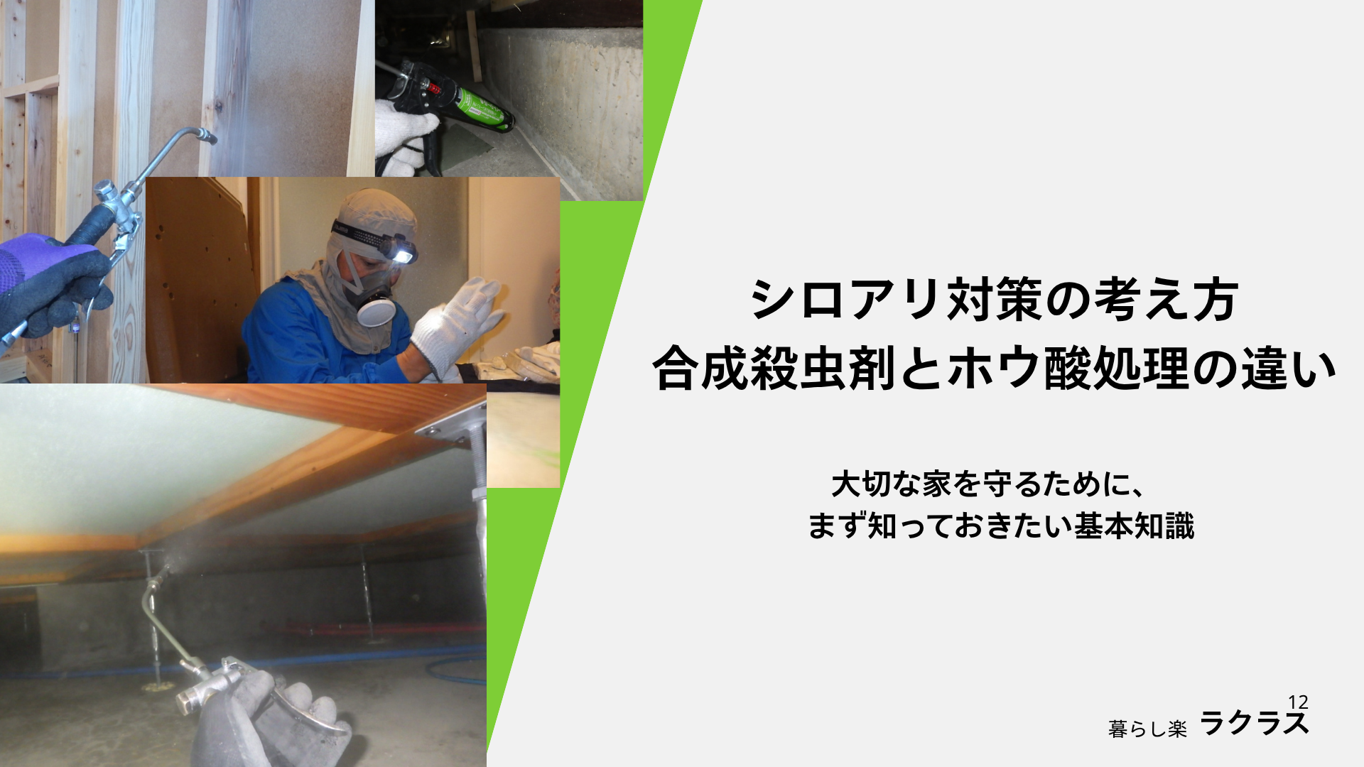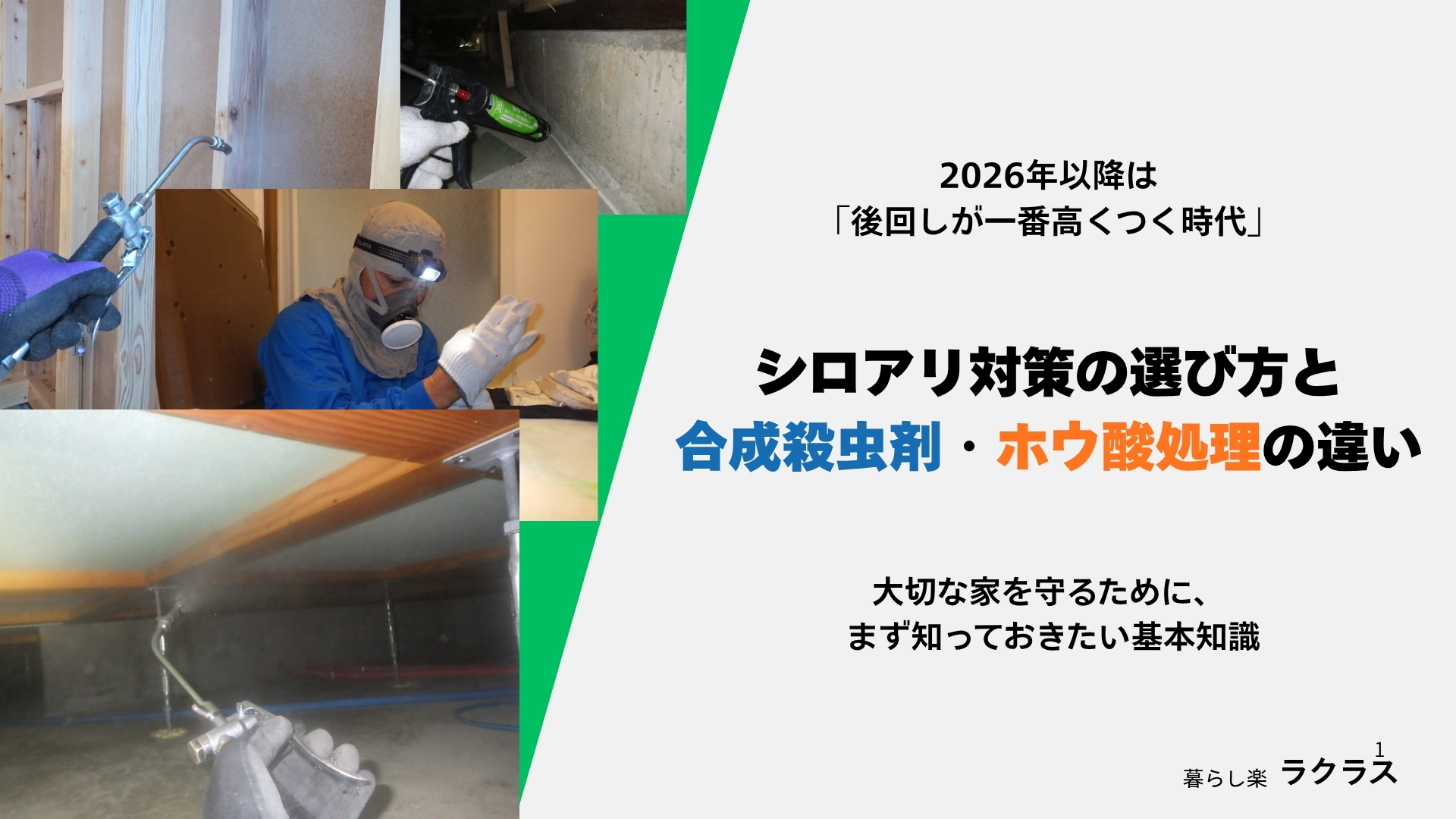 愛知で「家族」にも「お財布」にもやさしいシロアリ駆除・予防なら自社施工プランで安心価格のラクラスへ。